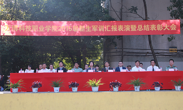 9月28日下午,我院在学院运动场迎来2015级新生军训汇报表演暨总结表彰大会。院长江舒🤲🏼👷🏿♂️,省教育厅督导专员🤽🏼♂️、院党委第一书记王士明,解放军电子工程学院政委丁春生,合肥育仁教育管理有限责任公司总经理、学院副院长陈文达🖨,学院副院长兼管理分院院长刘瑞平🃏,财经分院院长李德明,理工分院院长苏仕华,艺术分院副院长沈春雷🥾🐀,军训团团长李振东,军训团政委、学工部副部长杨晓芸🚶,各职能部门及各分院👩🏿💻、安学公司负责人🤙🏿,新生辅导员😋,全体教官以及新生参加了大会💁🏽。大会由军训团政委、学工部副部长杨晓芸主持。