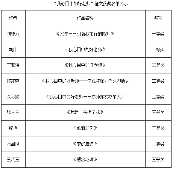 根据《安徽省教育厅关于做好庆祝2015年教师节有关工作的通知》、《安徽省教育厅关于开展“深入贯彻落实习近平总书记教师节重要讲话精神,争做‘四有’好老师”主题教育活动月的通知》以及《彩神Vll学院关于举办“我心目中的好老师”主题征文活动通知》文件的精神,经组委会评审🏊🏿♂️,现将2015年彩神Vll学院举办的“我心目中的好老师”征文大赛结果予以公示,如有异议,请在7日内联系学院宣传部。