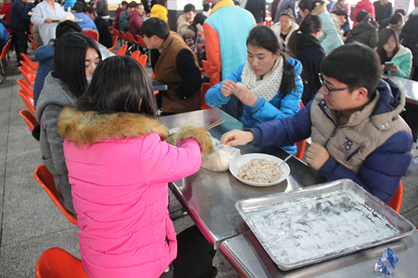 为了在寒冷的冬日将这份温暖传递到校园的每一个地方,经过一番忙碌后♥︎,院团委学生会的工作人员将煮熟的饺子一份份送给学院师生品尝👃。