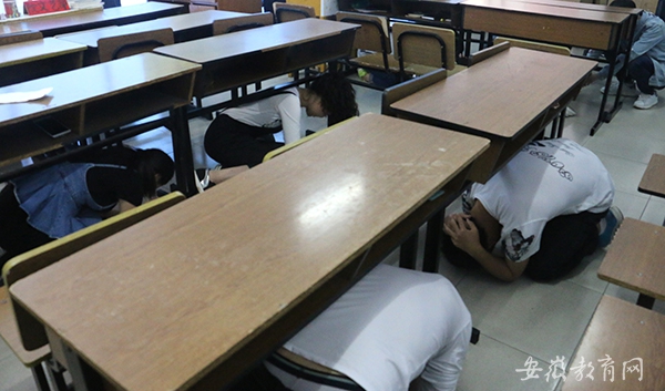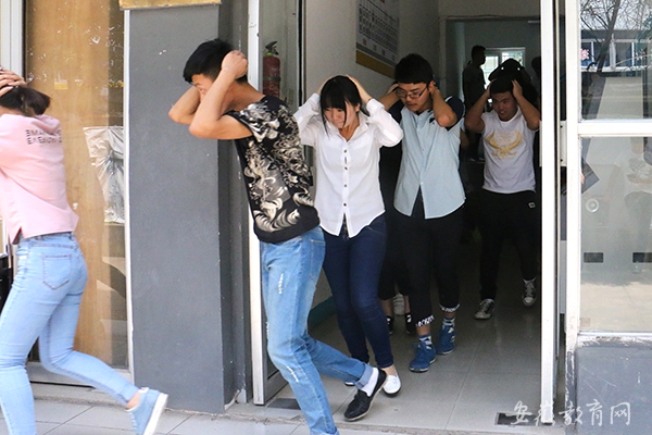 12时35分,警报声想起,教室里的学生开始就近应急避震,双手抱头蹲在各自的课桌下♢🏋🏿♂️,在相对牢固的地带躲避起来👱🏽♂️。随后,学生在学院老师的组织下,迅速、有序地撤离教室,疏散到较为空旷的运动场集合🔄。