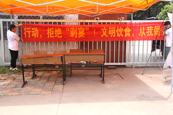 为了引起广大师生的重视,生活部组织同学们在条幅上签名支持“光盘行动”,并在食堂或者周边地区随机拍摄浪费粮食的照片,制作成展板、海报😓,予以警示及提醒。
