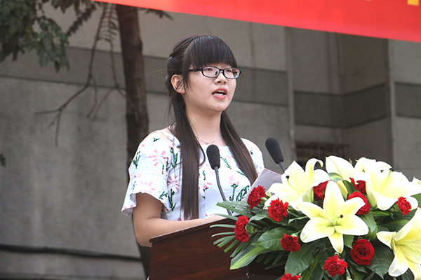 2016级财务管理专业周莹同学作为新生代表在典礼上发言。她表示,来到大学这个新的起点,要尽快适应新的环境,树立远大目标,团结友爱同学,用今天的拼搏成就明天的梦想。(汪启军 大学生通讯社:叶顺、韦能康 )