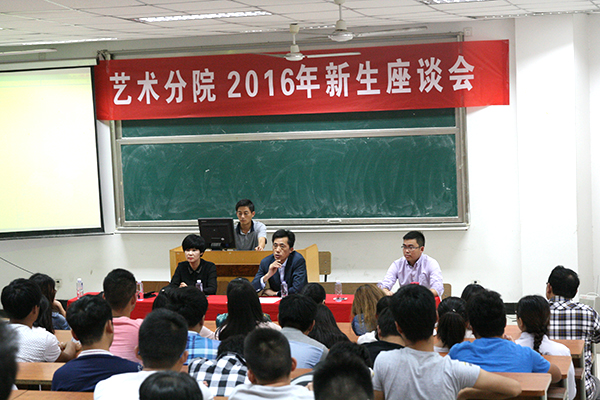 9月21日14时🐪👷🏻♀️,艺术分院2016级新生座谈会在学院3201阶梯教室顺利举行。艺术分院副院长沈春雷👱,分院院长助理刘静,分院教学助理、党支部书记🙅🏿、广告设计专业教研室主任关松涛,分院学工助理🙂、团支部书记水九清,音乐表演系教研室主任刘家如,艺术设计系教研室主任王金柱以分院各学科的全体专职教师和辅导员参加了此次座谈会,艺术分院学生会全体成员以及2016级新生列席了此次座谈会🪸🥉。座谈会由水九清老师主持。