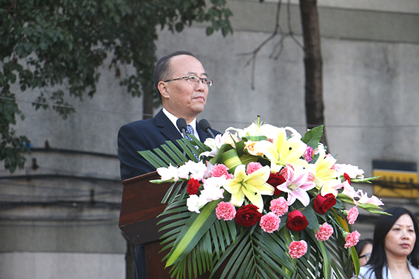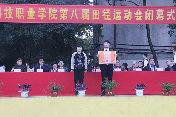 院长江舒为获得团体总分第一名的营销系颁发奖状