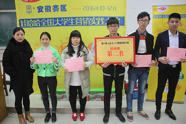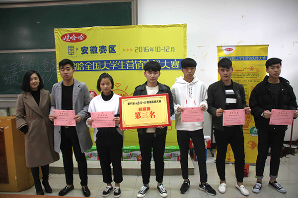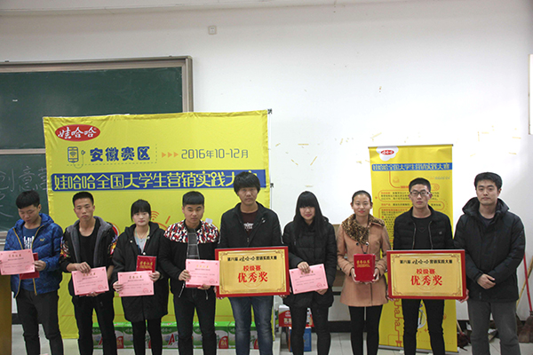 经过一个月的紧张比赛,由院创业指导委员会、院就业办🍊、院团委联合举办的第八届全国大学生哇哈哈营销实践大赛校级赛圆满落下帷幕。12月7日下午,在3202教室隆重举行了第八届全国大学生哇哈哈营销实践大赛校级赛的颁奖典礼。院创业指导委员会副主任🚘🫄🏼、财经分院院长李德明,杭州娃哈哈集团安徽分公司高校市场总监陈晓春先生,学院团委洪丽老师🙎♂️,财经分院辅导员盛婷婷老师应邀参加本次颁奖典礼💀。