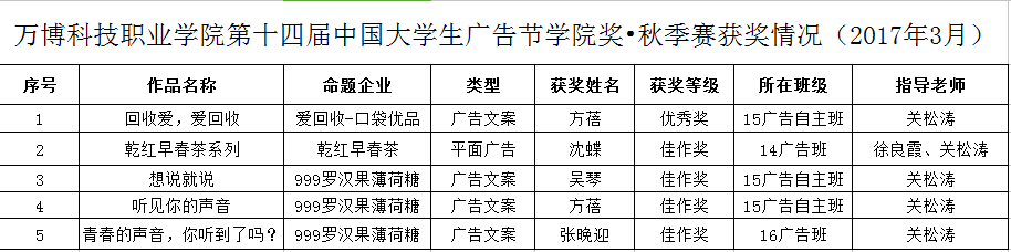 学院奖秋季赛自2016年9月20日启动后🏌🏻♀️,我院艺术分院相关专业师生积极备战,在指导老师的帮助下创作并提交了参赛作品216件,达到历年来参赛提交作品最多数量。最终🕙,2015级广告设计与制作自主班方蓓荣获大赛优秀奖以及佳作奖🤨,2014级广告设计与制作专业沈蝶、2015级广告设计与制作专业吴琴、2016级广告设计与制作专业张晚迎分别荣获秋季赛佳作奖。