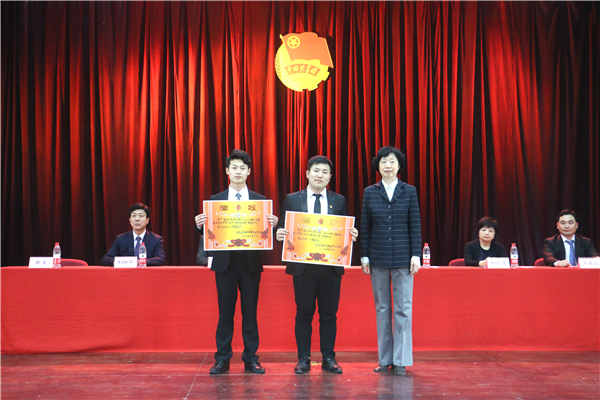 院长江舒为国家奖学金获得者童梦梦、章颖颁奖