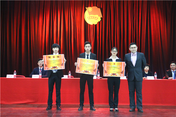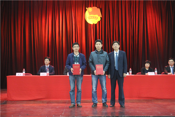学工部副部长李春山为院级三好学生颁发荣誉证书