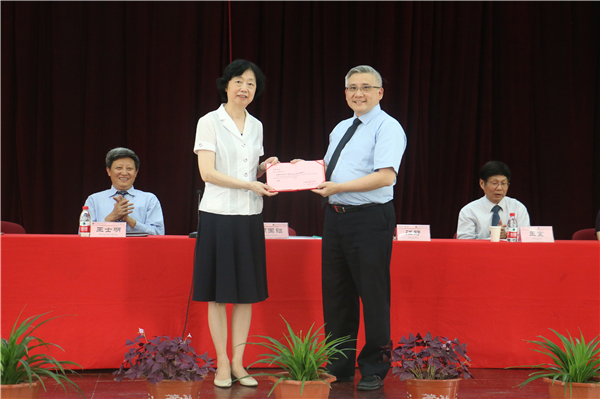 周国础董事长为江舒院长颁发“名誉院长”聘书