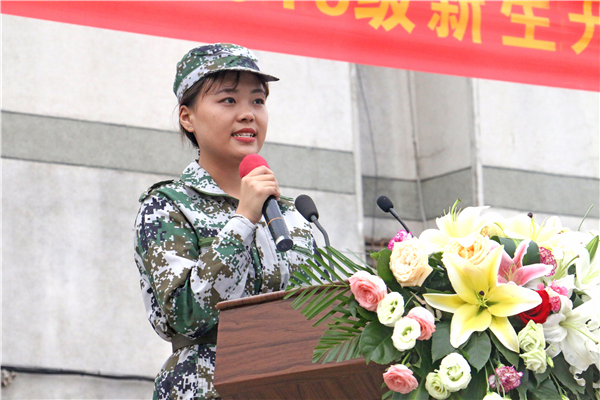 2018级幼儿发展与健康管理专业孙璠作为新生代表在发言中表示,面对大学这个新的人生舞台,新的挑战迎面扑来,在往后的生活和学习中,要做到转变角色,适应新生活🪮;珍惜大学时光,刻苦学习⛰⁉️。对于军训,她代表全体受训同学做出承诺🥃,坚决克服各种困难,坚决服从军训管理🧑🏼💻🥴,绝不辜负师长殷切期盼。(大学生记者团)
