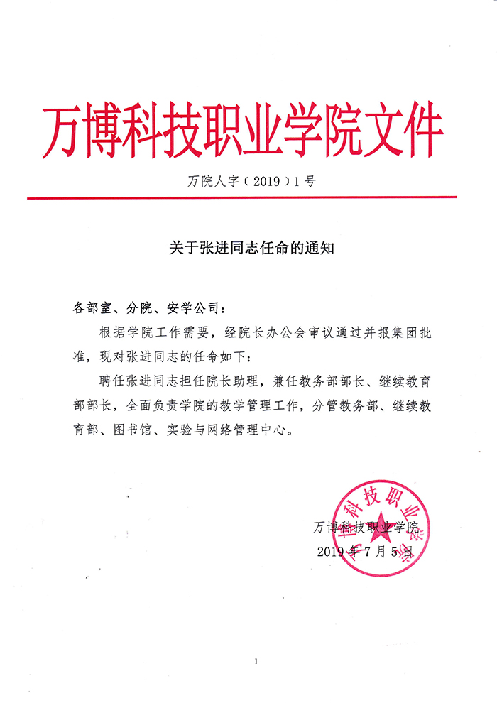 关于张进同志任命的通知
