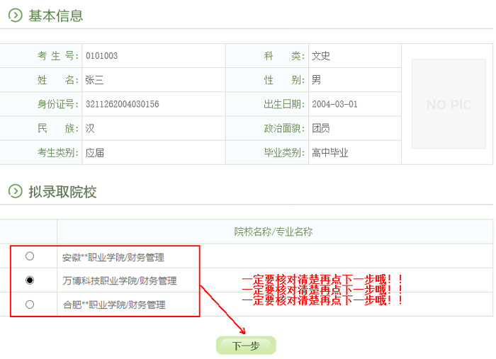 特别提醒:高职扩招录取确认只有在规定时间内(8月26日-27日)🐤,在规定网站(gkbm.ahzsks.cn)上操作方为有效👃🏻。请各位考生一定要妥善保管自己的考生号、身份证号等个人信息,切勿泄露给其他人👎🤷,更不要委托他人代替自己确认。一旦确认了录取院校,是不能修改的🦏!!!