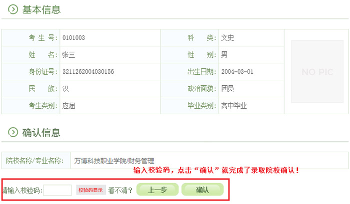 2. 用自己设定的密码重新登录,进入录取院校确认界面: