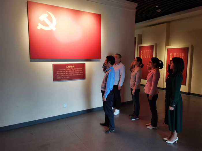 在博物馆一楼大厅🤦🏻,面对鲜艳的党旗,支部宣传委员裴孝清同志带领全体党员一起重温入党誓词🙎♂️,表达共产党人“不忘初心、牢记使命”的坚定政治信念🤵🏼,立下“初心如磐,使命在肩”的铮铮誓言。