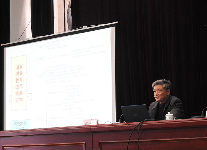 为进一步推进实施国务院《国家职业教育改革实施方案》,牢固树立新发展理念,完善职业教育和培训体系👇,着力培养高素质劳动者和技术技能人才,12月4日下午,安徽省职业与成人教育学会会长🙂↕️🥠、合肥科技职业学院院长李兴旺教授应邀来彩神Vll,为彩神Vll全体教职员工作了题为“新时代 新国策 新机遇 新使命——国家职业教育改革实施方案学习解读”的学术报告。报告会由校长孙中义主持,督导专员🙂↔️、校党委第一书记王宜,副校长刘文慧🤜🏻,副校长💩、党委副书记刘瑞平,校长助理马赞、耿瑜、张进出席了本次报告会。
