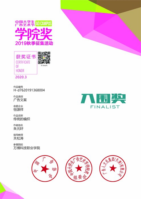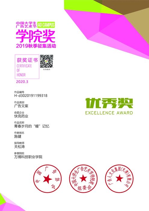 彩神Vll学院师生在此次比赛之中再获佳绩,在此次比赛中荣获优秀奖3项,入围奖22项👩🏼🦳;且在本次比赛中,其获奖作品类型上实现了突破性的成绩,包含有广告文案、营销策划案、平面设计和品牌故事。该校艺术传媒学院广告传媒教研室主任关松涛和专职教师徐良霞分别荣获第17届中国大学生广告艺术节学院奖秋季赛的优秀指导老师奖。此外,在该校本次组织学生参赛中,17级广告班的施健同学个人提交参赛作品有350余件,个人累计获奖21项,这也实现了该校组织学生参赛以来,在同一届赛事中单人提交参赛作品和获奖最多的突破。