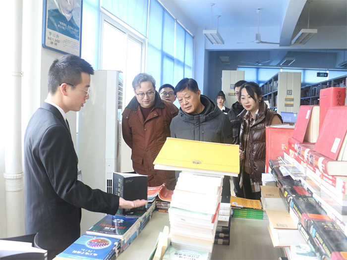 在各二级学院的图书展位前,校领导认真听取了图书讲解员的讲解,并不时对同学们设计的具有创意性和独特性的书籍造型,投以赞许的目光。校领导还仔细翻阅了有关书籍🏔,耐心询问各类图书的库存情况🤦♀️、借阅情况以及师生反映情况等。