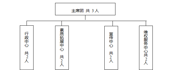 2. 工作机构架构为“主席团+工作部门”模式,未在工作部门以上或以下设置“中心”♏️、“项目办公室”等常设层级。 |