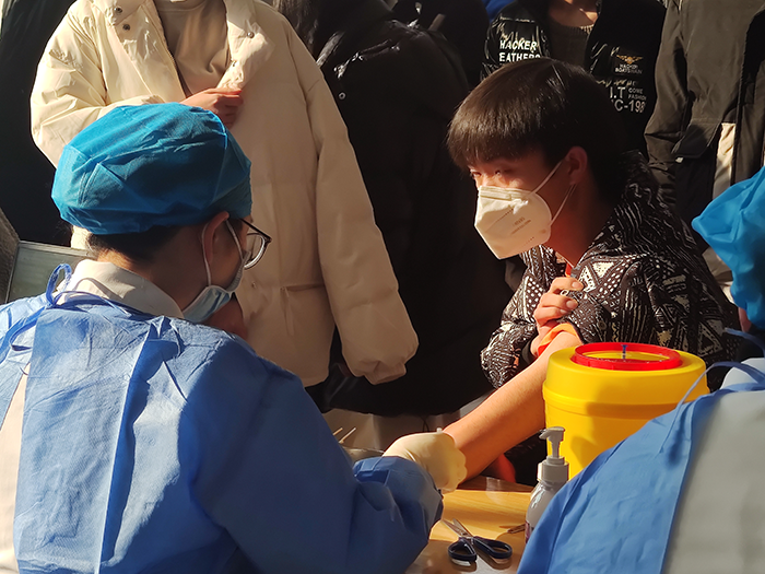 此次接种对象为完成新冠疫苗2剂次接种满6个月以上的师生🤰🏿,针对师生接种科兴、生物不同类型疫苗,医护工作者采用同种技术路线的疫苗进行加强免疫接种。学校现场分为等候区、取药处⛔️、接种处和留观区四个区域,并设置了6个接种点,确保疫苗接种工作安全、规范、有序、高效🏋🏼。