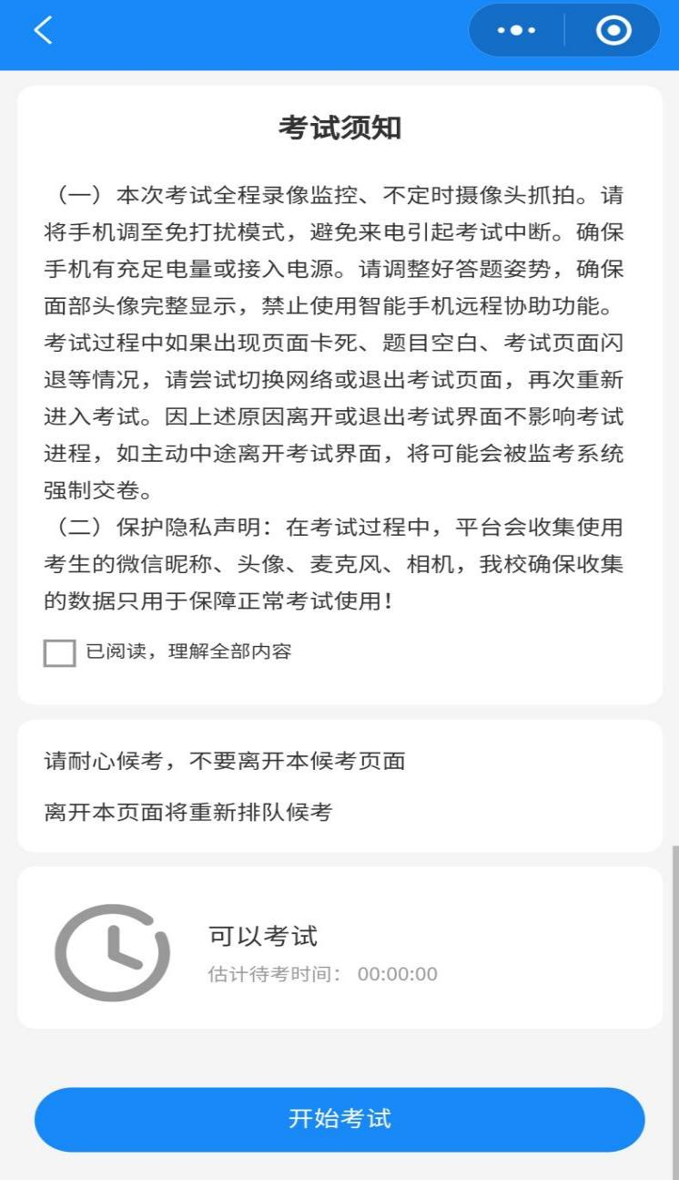 (3)抽取试卷试,如出现抽题卡死🤙🏼、空白试卷💇、闪退等意外情况🧎🏻♀️➡️,请重新登录小程序,系统重新计时、重新抽题不影响再次考试。