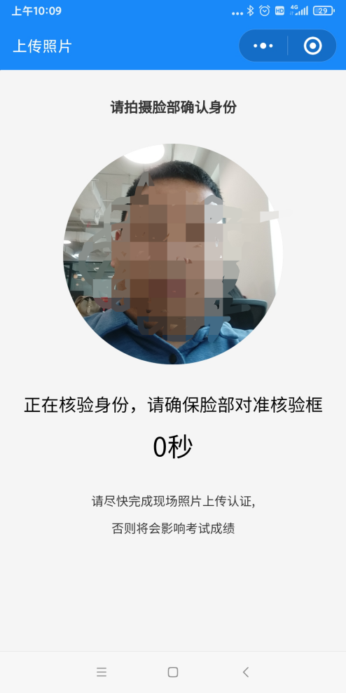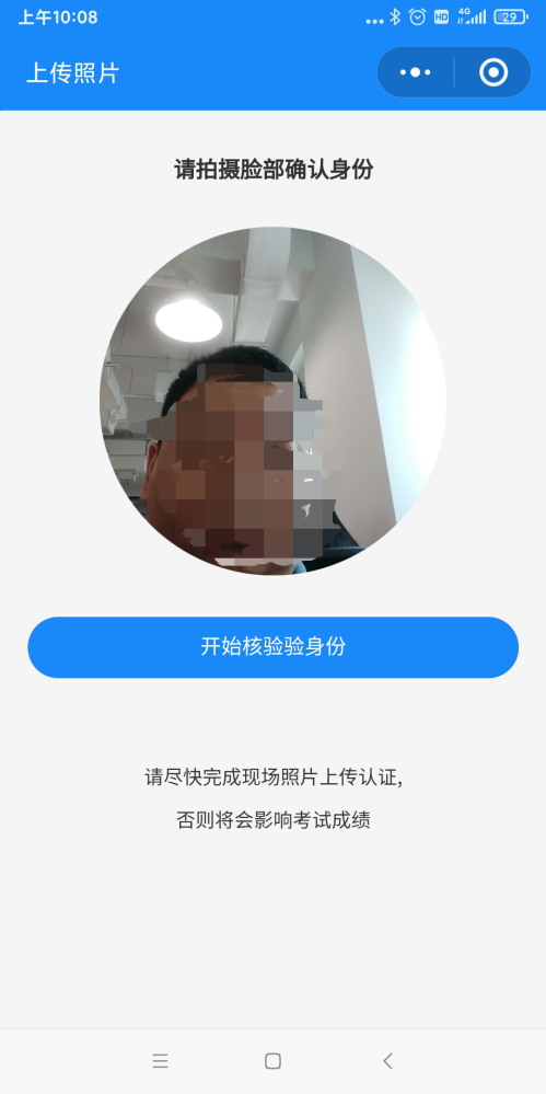 (2)在考试开始前⛹🏼♂️,系统要求考生必须进行人脸识别身份验证🏗,平台采用活体检查的方式进行身份核验,点击“开始核验身份”按键后请将脸部对准核验框3秒即可,如核验没通过👩🏫,可再次进行核验🧛🏻,3次核验不通过且确实是本人操作可联系管理老师处理。