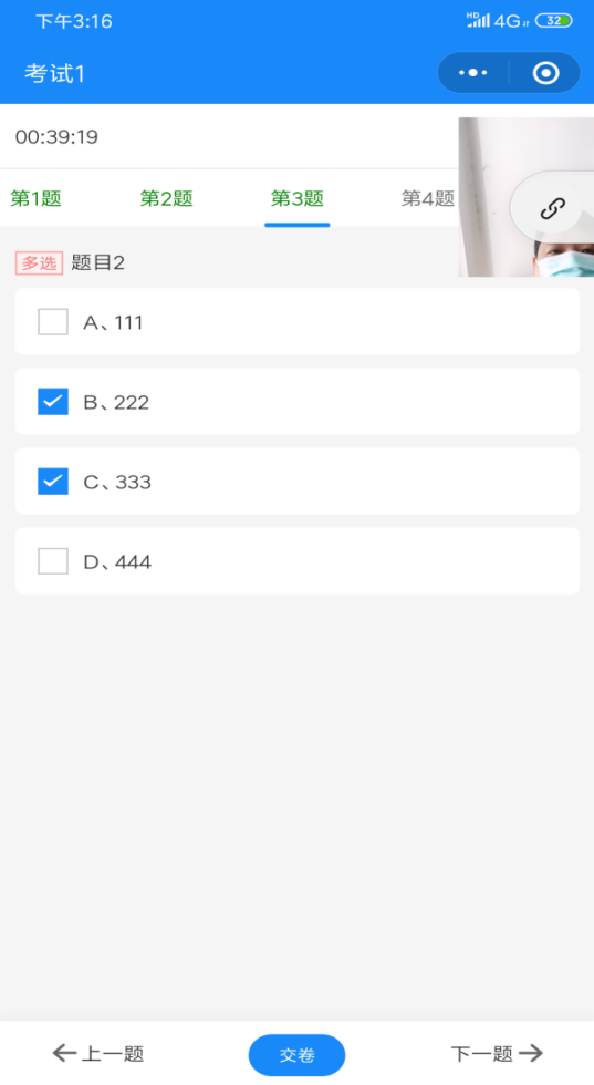 (4)抽题结束后进入正式考试⛵️,在做题过程中如果视频框挡住了题目🛡🚨,可以移动视频框避开✖️;