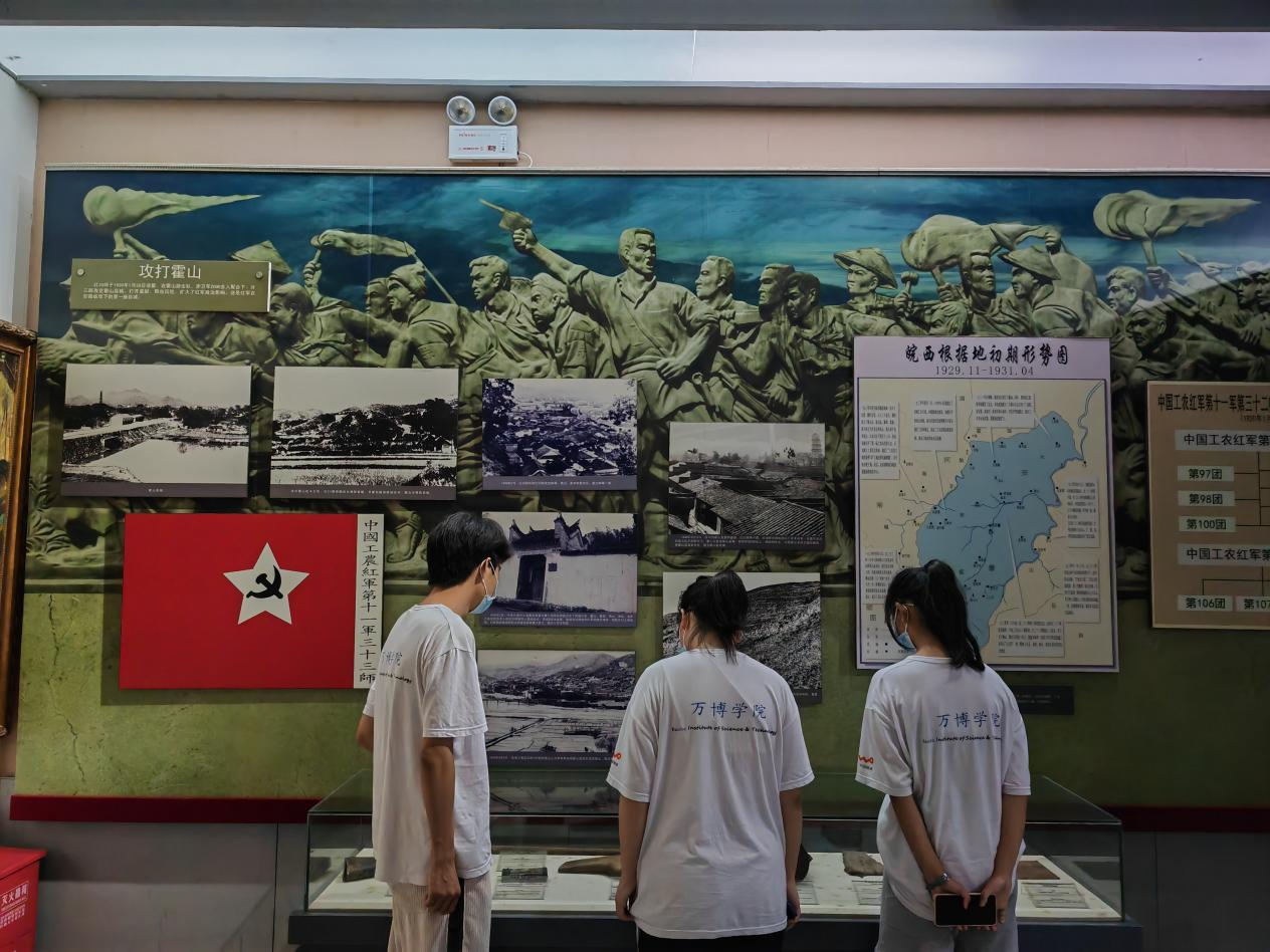 7月3日💅🏻,实践队来到金寨县革命博物馆。队员们参观了革命历史陈列馆、革命烈士事迹陈列馆、开国将军厅,观看了大量历史资料和文物🈸,并充分学习了金寨县革命历史🐵,以及将领洪学智🐭、徐立清等革命烈士的英勇事迹🫨。令队员们印象深刻的是刚成立第十天的红33师于1930年正月初一凌晨,在霍山游击队、赤卫军2000多人配合下,分三路攻克霍山县城🧎🕌,这是红军在安徽省攻下的第一座县城🦡。此次战役让群众备受鼓舞,纷纷加入红军革命队伍。