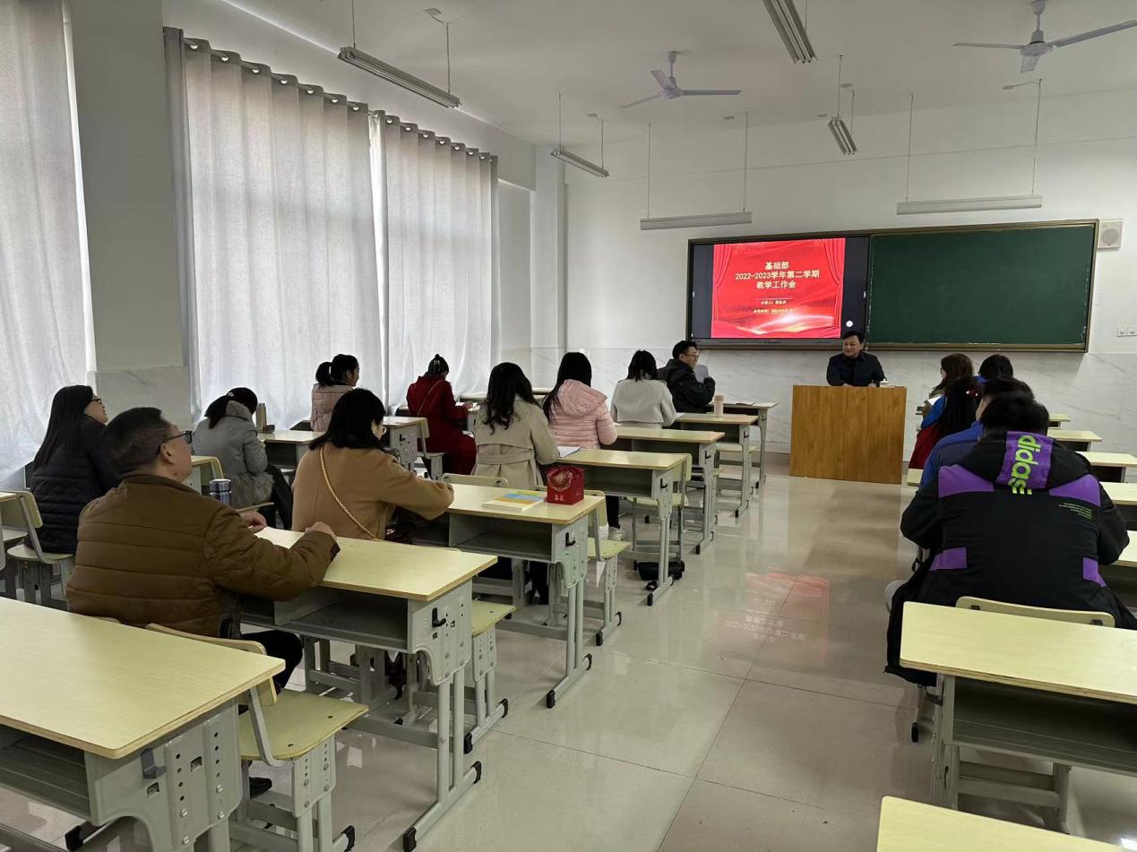 会上,徐红兵传达了教务部的相关会议精神,总结了2022年基础部工作,并根据学院发展现状💃🏻,结合基础部工作实际,围绕六个方面对本学期部门重点工作作出部署:一是要认真学习贯彻党的二十大精神,提振教师的精气神3️⃣🍄‍🟫,以良好的心态投入到新学期的工作中去;二是要加强师德师风建设👩🏼‍🏭,学习优秀教师的先进典型事迹,自我查摆工作中的存在的问题,尤其要深刻查找是否有理想信念淡薄、敬业精神不强🧒🏼、工作态度自由散漫👦🏼、教学方式简单粗暴🤦🏼‍♂️、违反教学纪律等不良现象;三是要提升教师教学和科研水平,提高青年教师的成长,拓宽青年教师的发展通道🧚‍♂️;四是要加强教学监控和教学督导的力度📦,加强教案🏆、课件、进度表、大纲的检查次数👨🏻‍🎨,加强互听课的质量,加强上课情况的随机检查力度;五是要加强教研室建设,完善教研活动制度😢,做到教研活动有计划、有创新、有记录;六是要加强教学改革力度,不断优化教学管理体制,完善教学评价机制💿;七是要聚焦课程建设👰🏿‍♂️、完善公共课程建设标准👨‍👩‍👦、职业技能大赛课程辅导等工作。