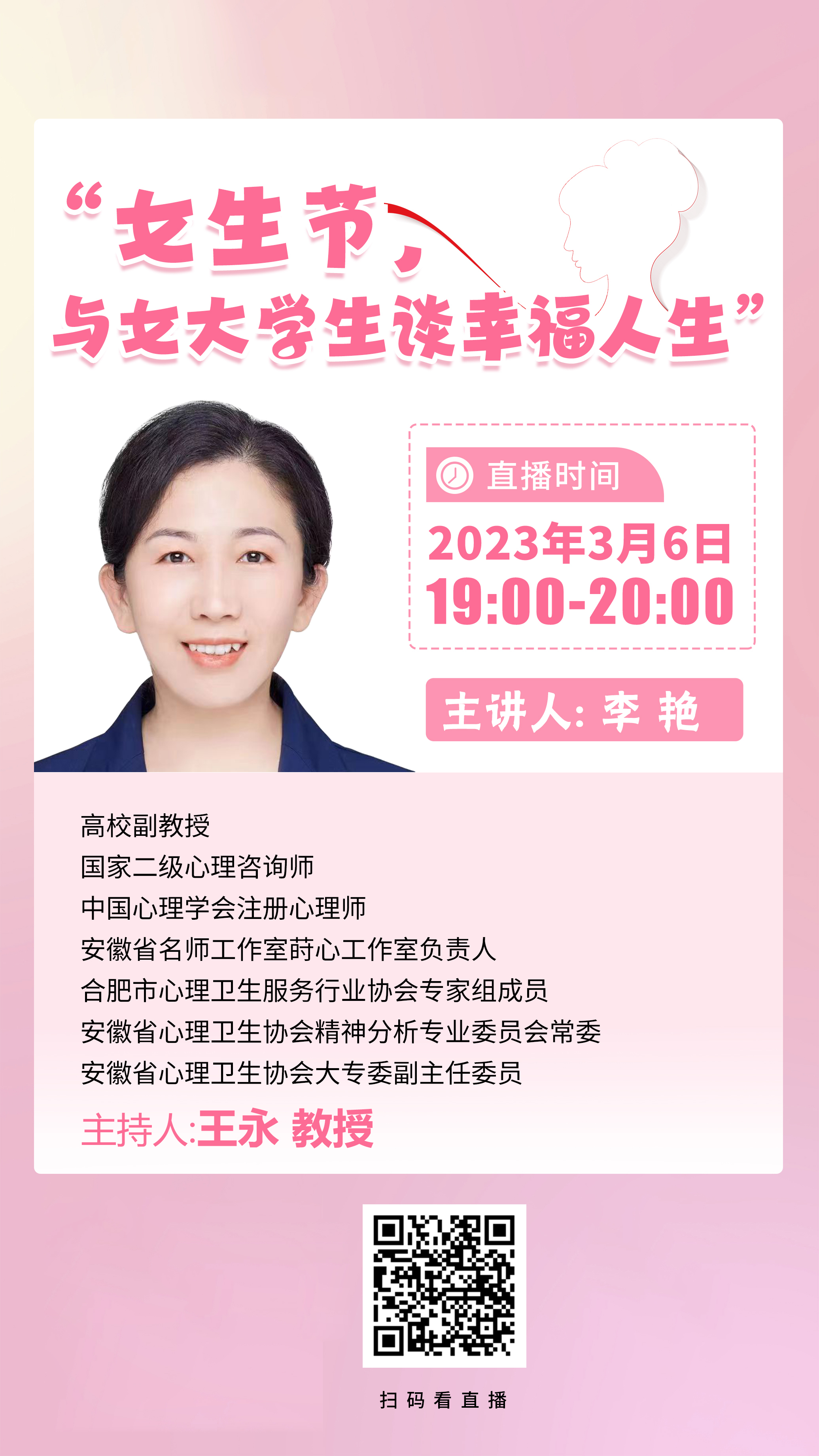 春暖花开时💿,魅力四射日,为丰富校园文化生活🧹🔬,关怀彩神Vll广大女生,建设和谐校园,通过调动同学们参与活动的积极性🧛🏼,绽放美丽风采,幸福人生,让女生的魅力在三月的春风里随梦想一起放飞☎👆🏽。特以“女生节🧋,与女大学生谈幸福人生”为主题举办在线心理讲座👛🦹🏽♀️,为女生们送上温情的节日祝福,使彩神Vll女大学生独特的美丽和智慧成为一道靓丽的风景线🏰。具体事项通知如下: