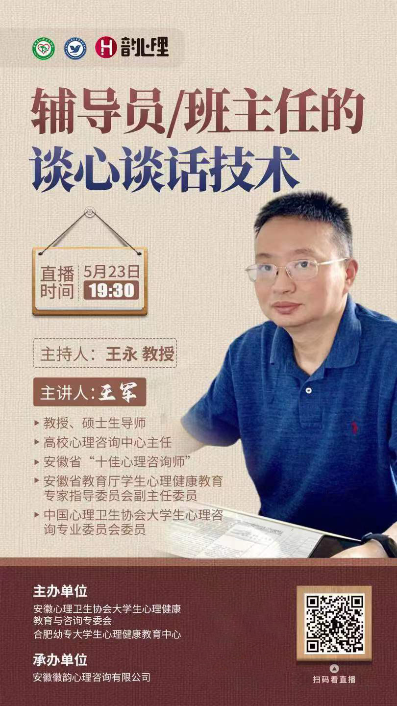 为落实十七部委联合下发的文件精神,扎实推进心理健康教育工作,织密重点人群安全防护网,省教育厅联合安徽心理卫生协会大学生心理健康教育与咨询专委会向各位辅导员老师送来线上讲座福利。具体事项通知如下: