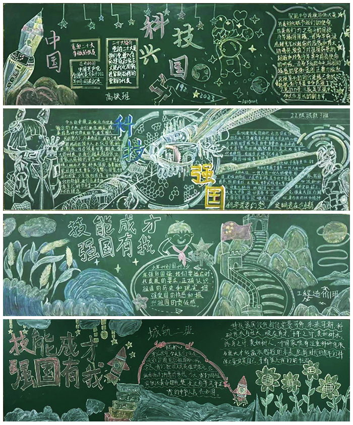 为深入学习贯彻党的二十大精神,落实立德树人根本任务,交通工程学院精心组织各班级开展了“技能成才👏🥅,强国有我”主题黑板报活动。