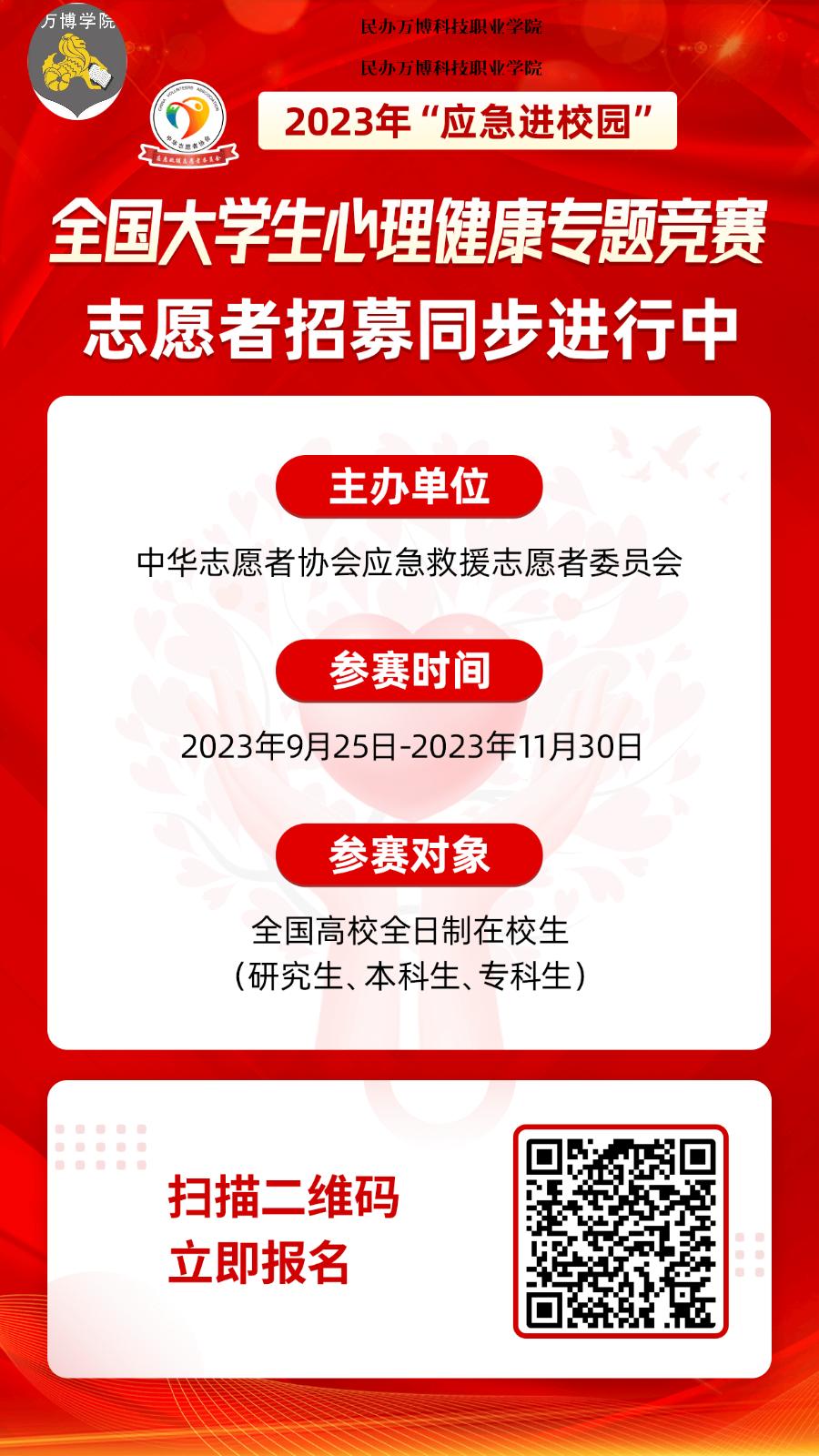 为认真落实习近平新时期代中国特色社会主义思想,深入贯彻《健康中国2030规划纲要》相关要求,加强公众安全教育,增强风险防范意识,提升应对突发事件的能力,推进安全宣传进企业、进农村、进社区、进学校、进家庭👳🏻,提高社会整体安全水平。为此,中华志愿者协会应急救援志愿者委员会主办本次科普竞赛活动。现决定组织开展“2023‘应急进校园’全国大学生心理健康专题竞赛活动”。现将有关事项通知如下🌽: