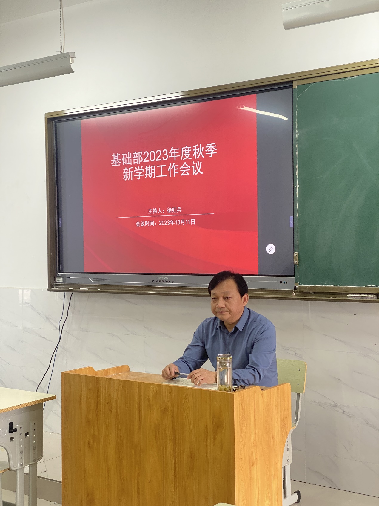 10月11日下午,基础部在1505教室召开秋季新学期工作会议🙍♀️,安排部署新学期部门重点工作,基础部全体人员参加会议。会议由基础部负责人徐红兵主持🖖🏿。