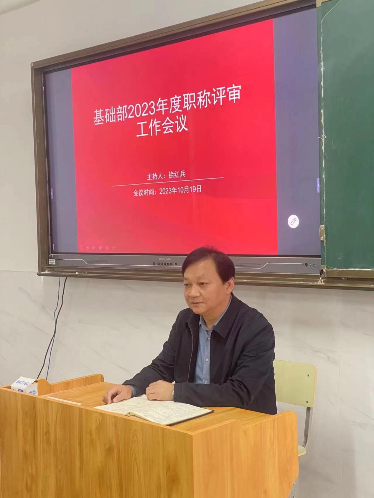 10月19日下午,基础部在1505教室召开2023年度职称评审工作会议,基础部职称评审小组成员和职称申报人员参加了会议📃🧑🏼🦰,会议由基础部职称评审小组组长徐红兵主持🐻🤏🏽。