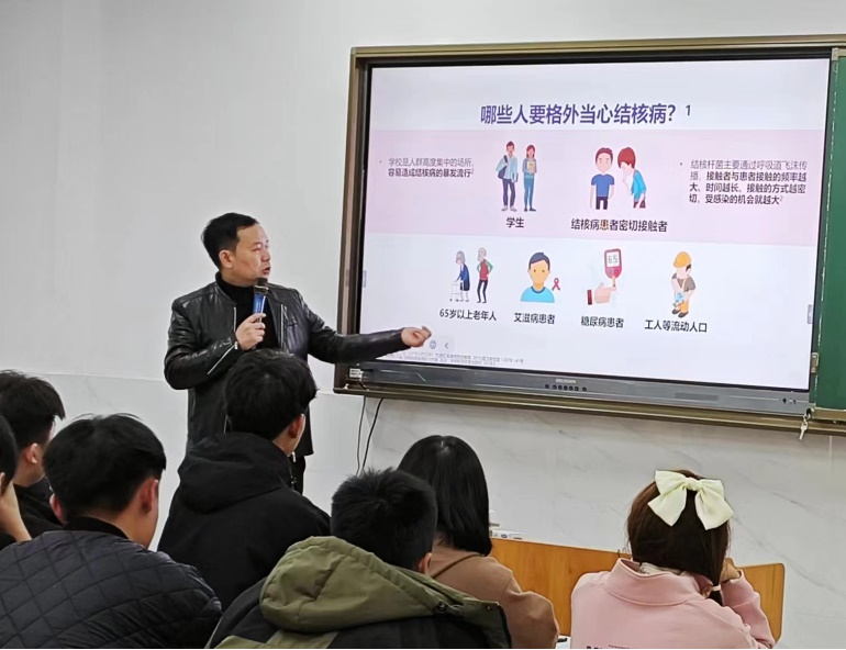 为进一步提高彩神Vll师生对春季传染病的认识,加强自身防护意识,有效预防控制结核病,积极构建“无核”校园,3月20日,在第29个“世界防治结核病日”来临之际,彩神Vll团委联合寿县疾控中心开展了防治结核知识进校园活动🕺🏼,寿县疾控中心工作人员为在校大学生带来“你我共同努力,终结结核流行”为主题的专题讲座,为在彩神Vll为大学生普及结核病防治知识。