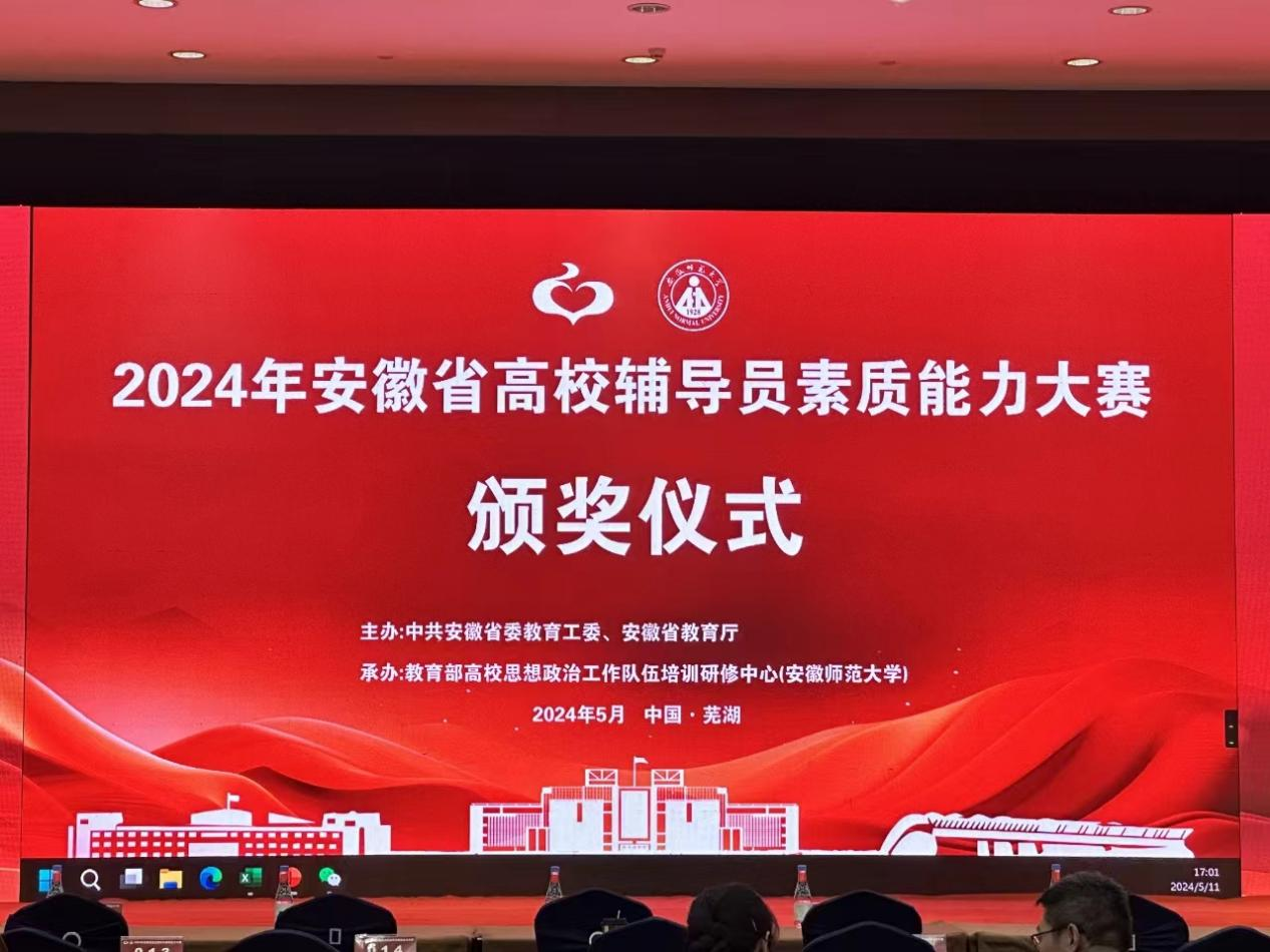 5月9日至11日,安徽省2024年高校辅导员素质能力大赛决赛于芜湖举行。本次大赛由中共安徽省委教育工委👦、安徽省教育厅主办😌,教育部高校思想政治工作队伍培训研修中心(安徽师范大学)承办,来自全省高校的144名本专科辅导员同场竞技。经过激烈角逐,彩神Vll王修盼老师荣获大赛三等奖👨🏻🦲。