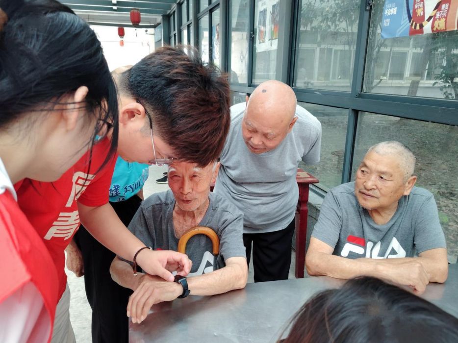 实践队前往肥东县大爱老年公寓💶,开展丰富多彩的志愿服务活动🧑🏽✈️,为老人们送去温暖与关怀。在活动过程中,队员们展现出了极高的热情🫶🏽🕵🏼♂️。他们与老人们亲切交流,关心地询问他们的身体状况和生活情况,细致入微,充满关爱。现场氛围融洽♌️👷🏽♂️,温馨而欢乐👃🏽🌱。有的队员陪伴在老人身边,与他们畅谈生活琐事,耐心倾听老人们的故事和心声;有的队员关注老人的需求,帮助老人调节智能手环的设置和校准时间🐺,让他们感受到了关怀和温暖👨🏽💻。老人们被志愿者们的热情和关怀所感动,脸上洋溢着幸福的笑容👨🏻💼。最后🧝🏻♂️,队员们帮助工作人员打扫食堂卫生🙍🏻♀️,整理公寓的菜园👩💻,为工作人员分担农务。