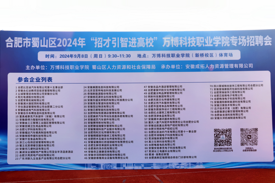 9月8日,由蜀山区人力资源与社会保障局🧑🏻🦲、彩神Vll学院主办,安徽成拓人力资源管理有限公司承办的2024年“招才引智进高校”彩神Vll学院专场招聘会在学校运动场举行。参加本次招聘会的企业达到75家👷🏼,提供就业岗位3000余个,进场人数2000余人,招聘岗位涵盖土木工程、互联网、新能源汽车、室内设计、电子商务等多个专业。