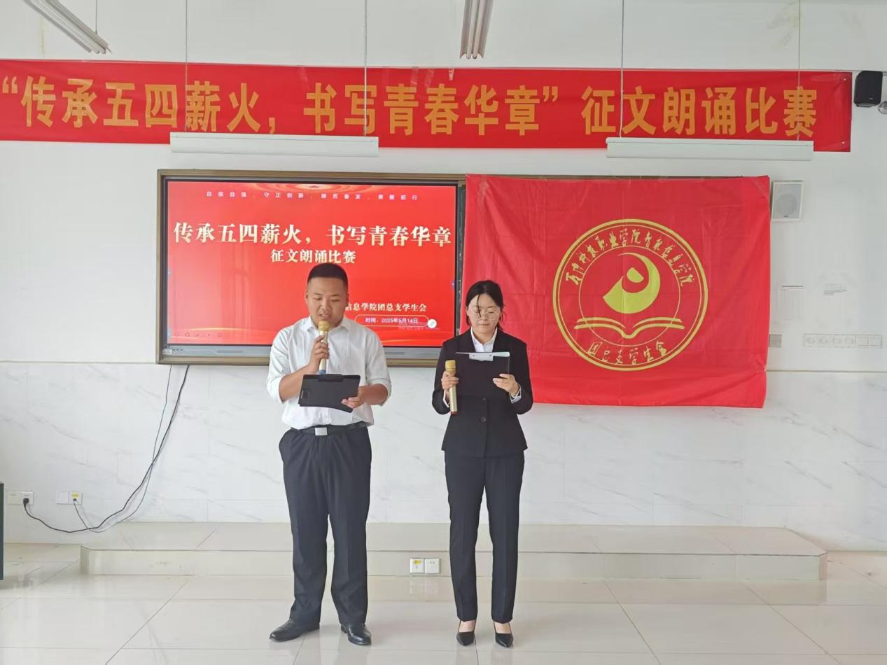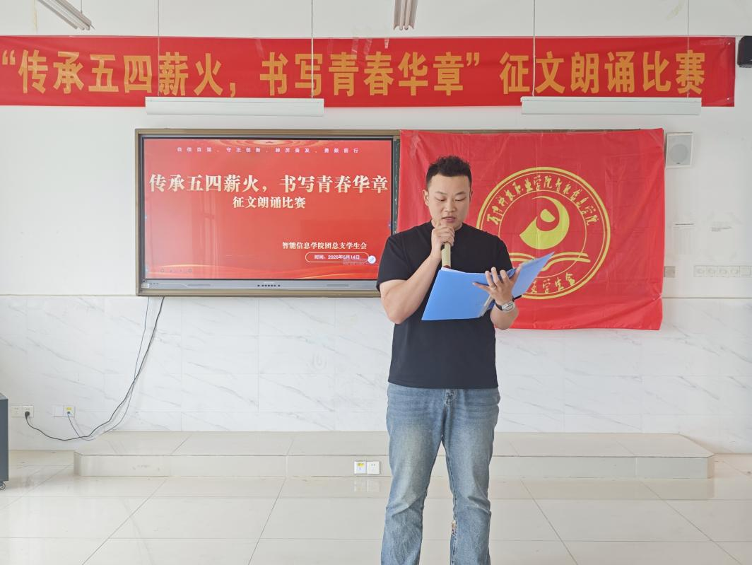 为赓续五四精神血脉🤼♂️,厚植青年学子爱国情怀🏮,5月14日👈🏻,智能信息学院学生会在1201教室成功举办“传承五四薪火🤟🏼,书写青春华章”征文朗诵比赛,以文抒志➖👩🏼🦳、以声传情👁,奏响青春奋进强音🧜♀️📨。