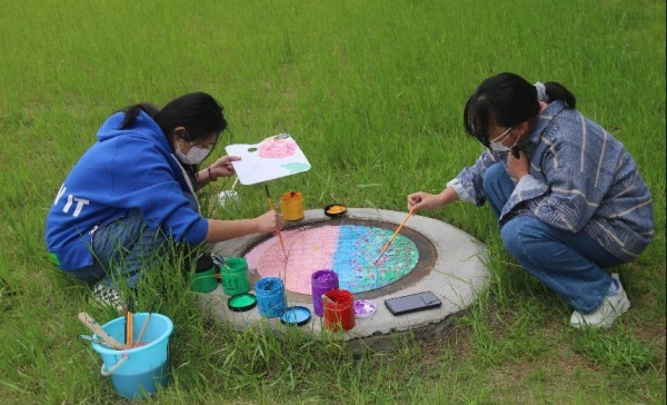 艺术传媒学院团总支组织开展“多彩校园 井上添画”主题井盖美化活动为喜迎党的二十大、庆祝建团100周年➕,深入学习宣传贯彻习近平新时代中国特色社会主义思想,落实立德树人根本任务,引导团员学生坚定